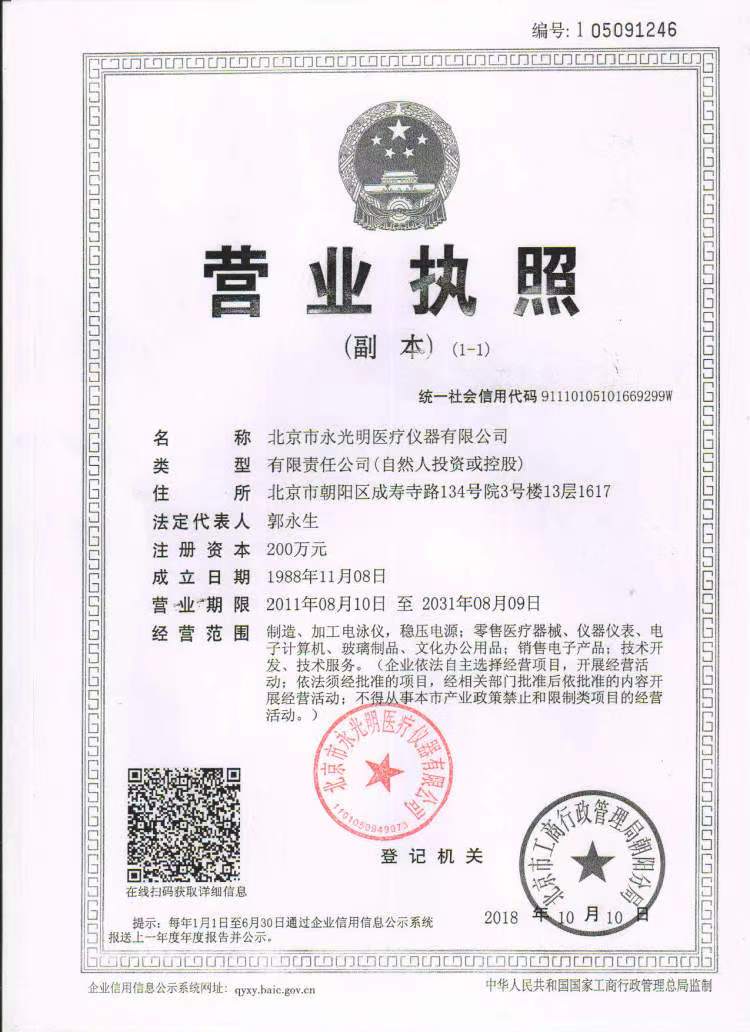 醫(yī)療器械經(jīng)營許可證:川蓉食藥監(jiān)械經(jīng)營許20190341號